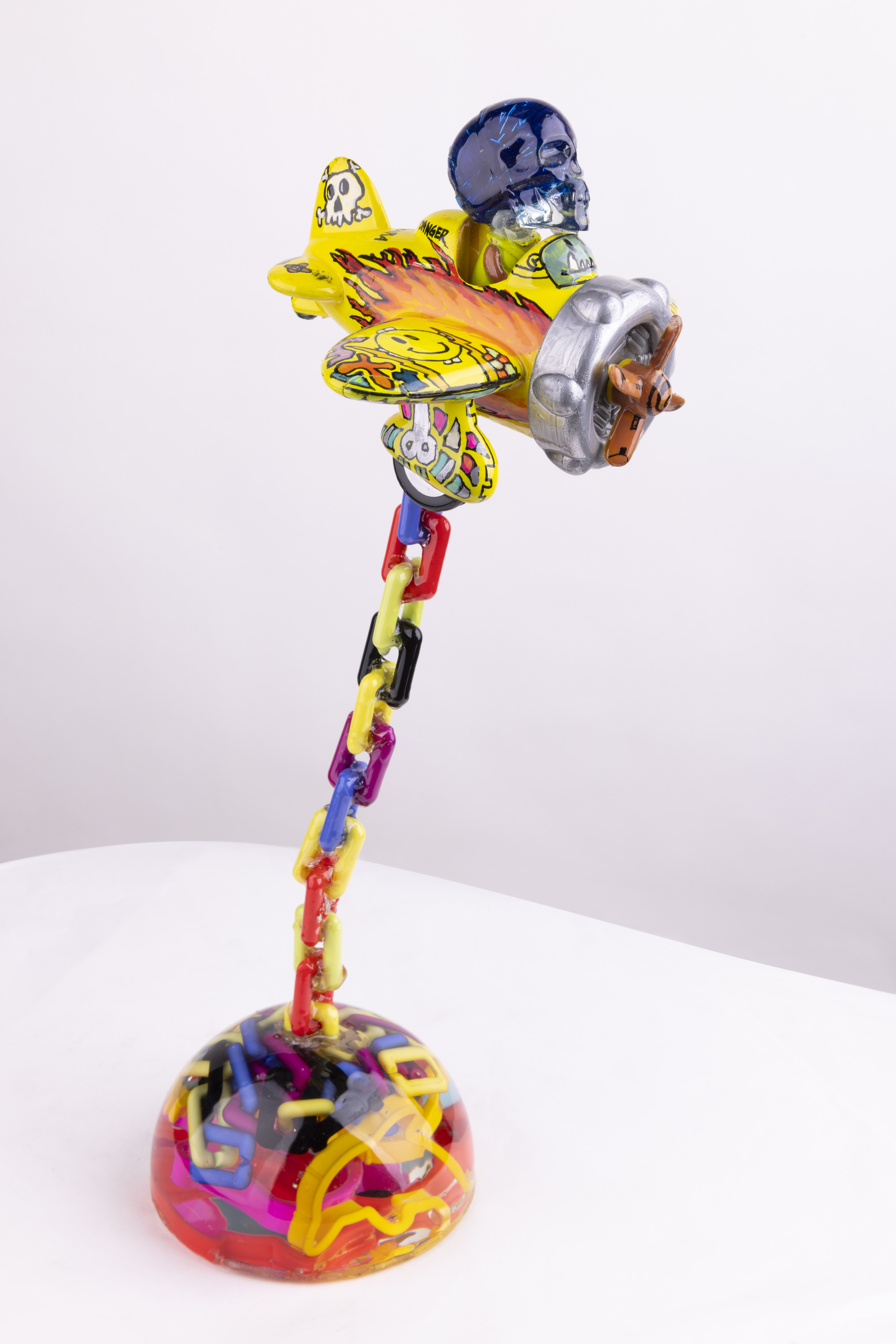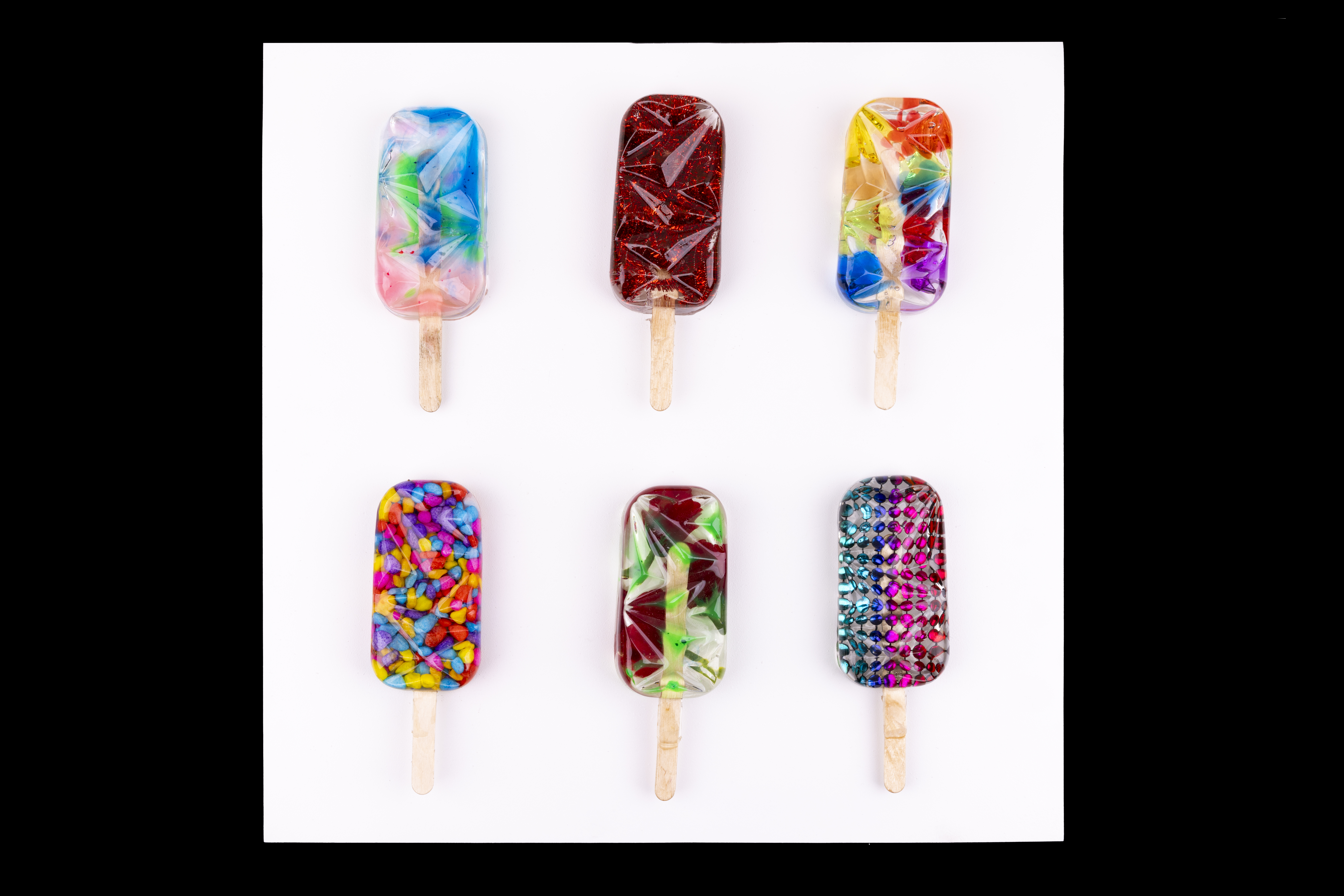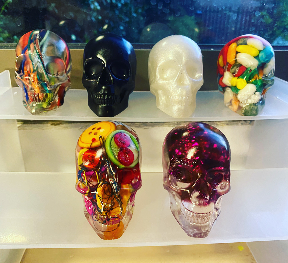 Creamos obras de resina en las que mayormente buscamos encapsular elementos que la gente desecha o que no usa, para congelarlas en el tiempo.