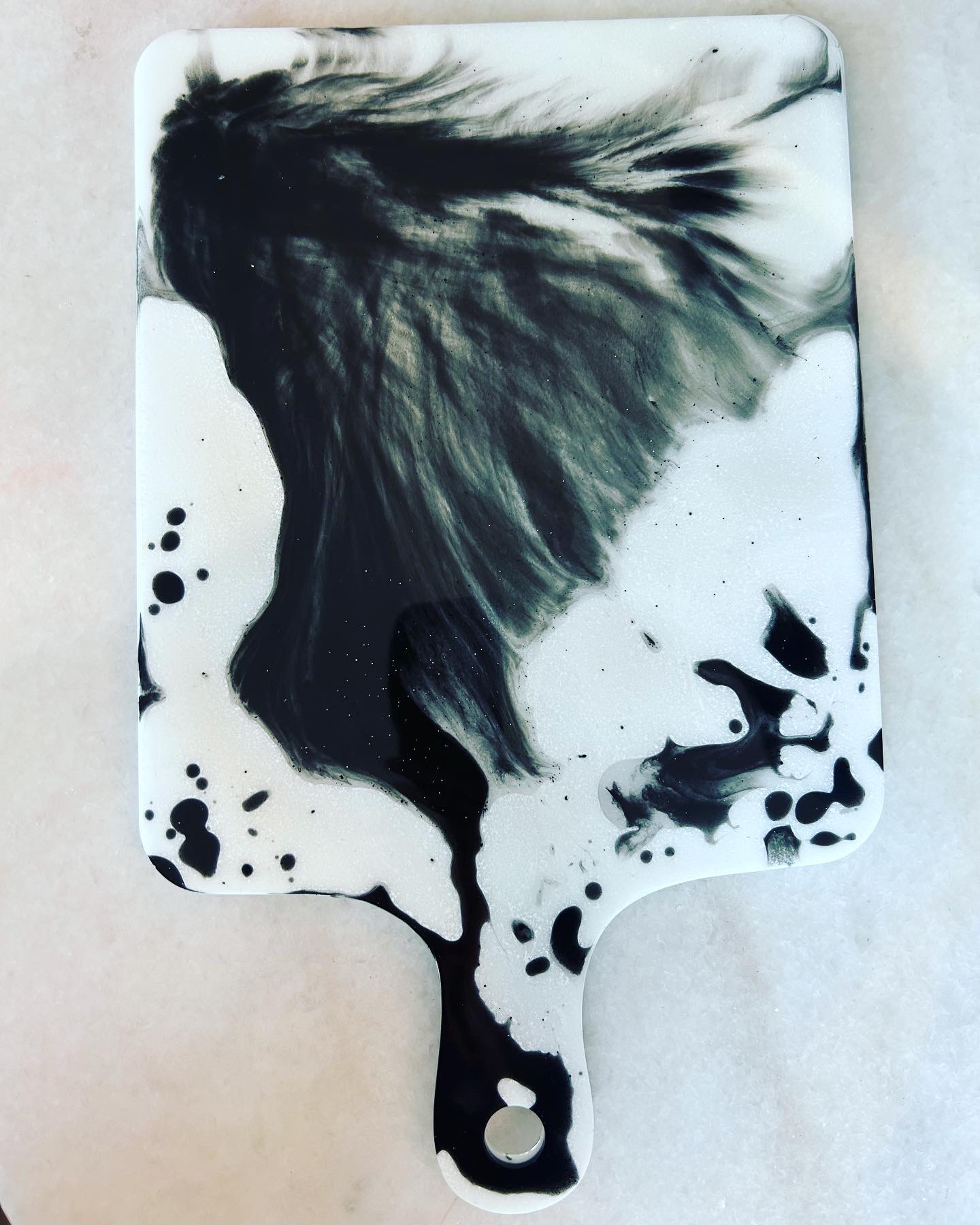 Todo pintado a mano con pintura acrílica y oleo, lo que termino con un baño de resina para darle un brillo único.