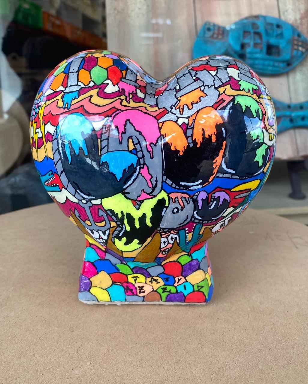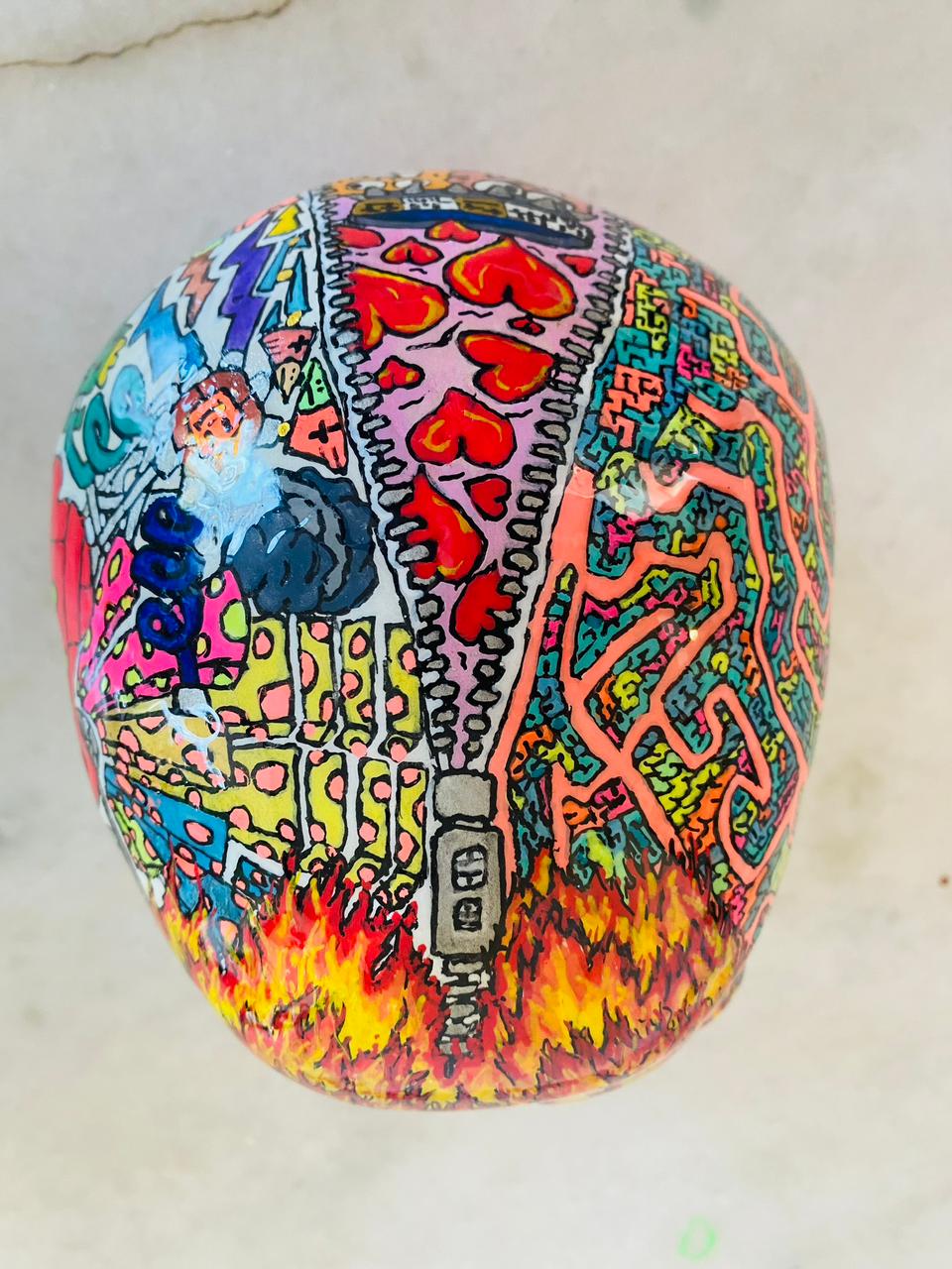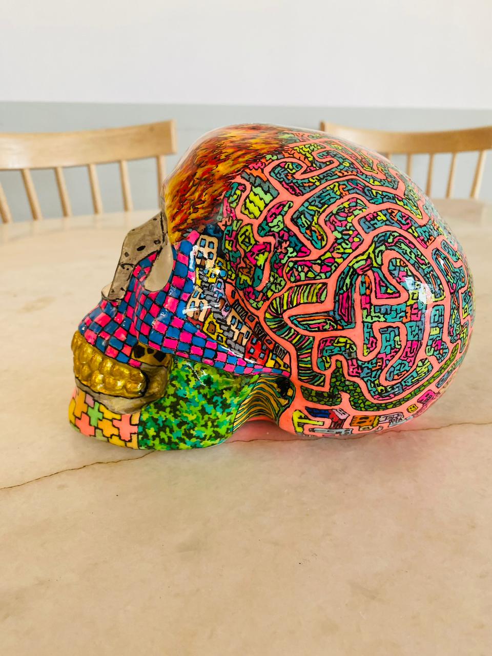 Cada una de estas esculturas, son pintadas con pintura acrílica y oleo. Tomo un lápiz y no paro de dibujar sobre ellas distintos patrones, dibujos y figuras, no dejando ni un espacio sin algún detalle. Cada obra en si es un conjunto de diseños diferentes entre uno y otro, pero que en su conjunto logran una armonía única.