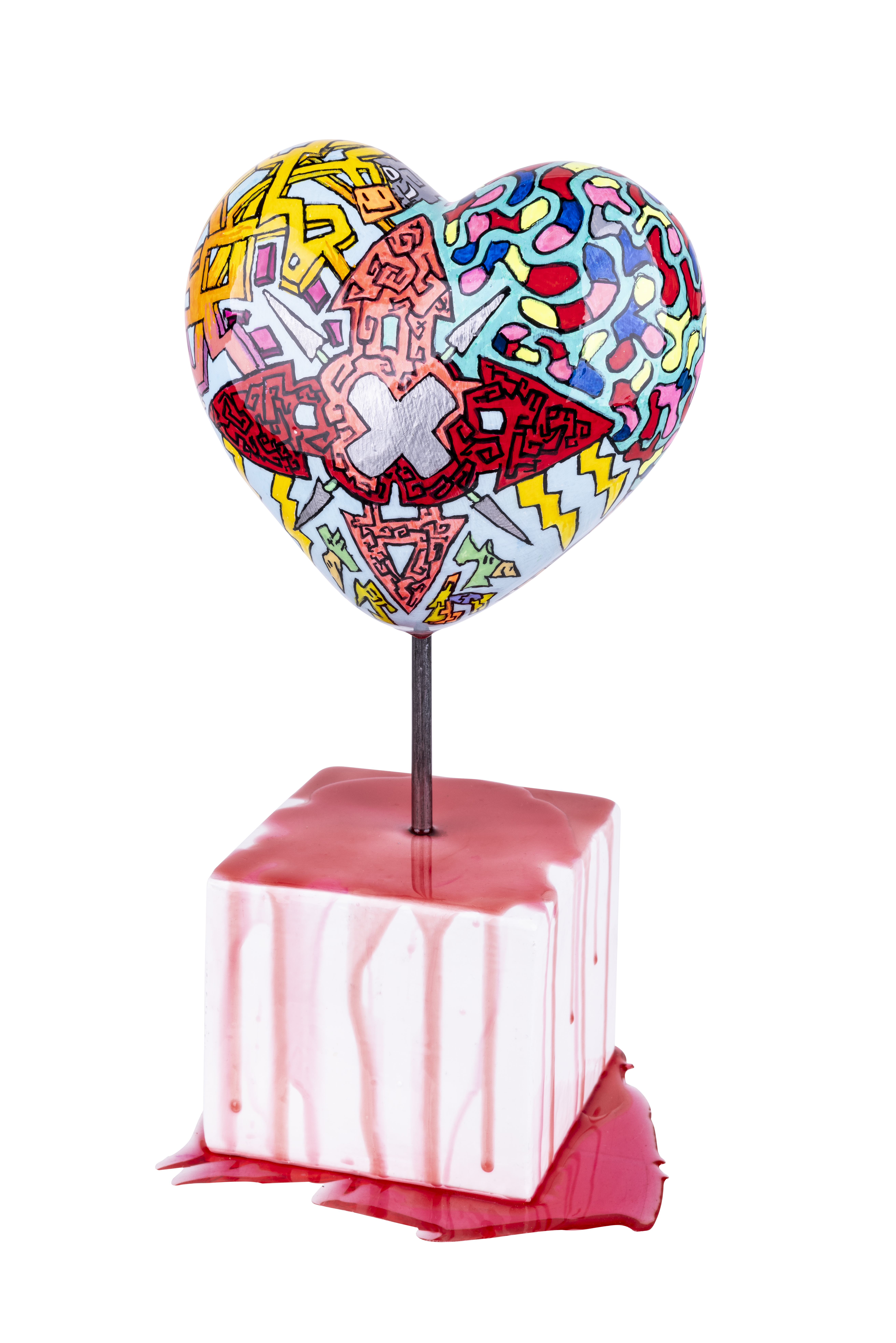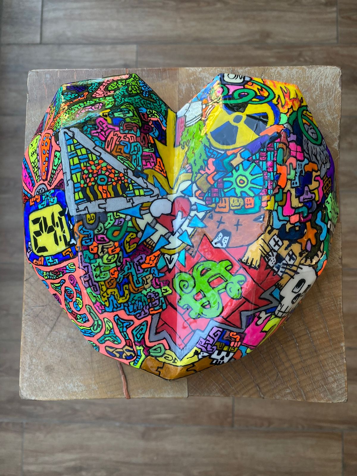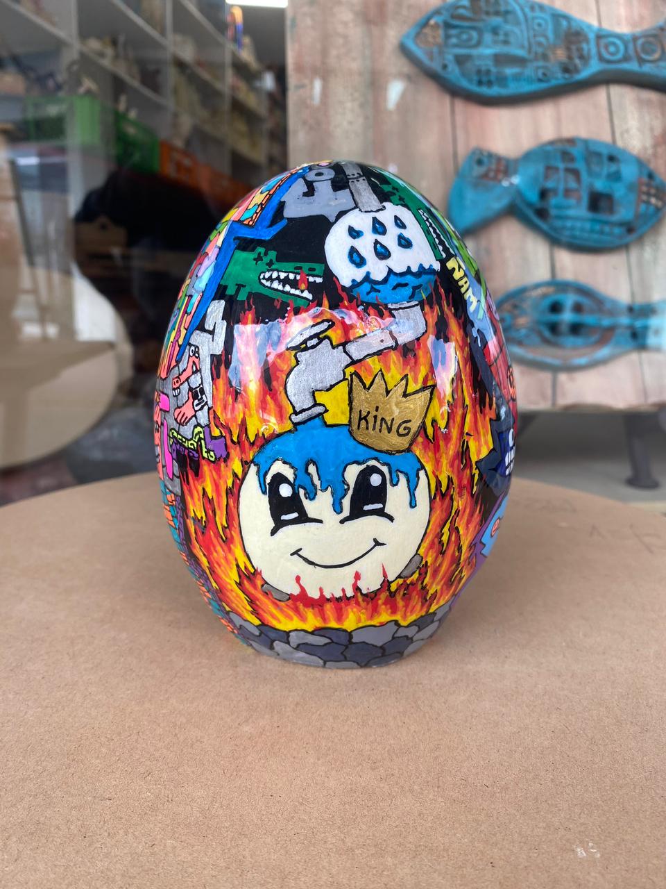 Cada una de estas esculturas, son pintadas con pintura acrílica y oleo. Tomo un lápiz y no paro de dibujar sobre ellas distintos patrones, dibujos y figuras, no dejando ni un espacio sin algún detalle. Cada obra en si es un conjunto de diseños diferentes entre uno y otro, pero que en su conjunto logran una armonía única.