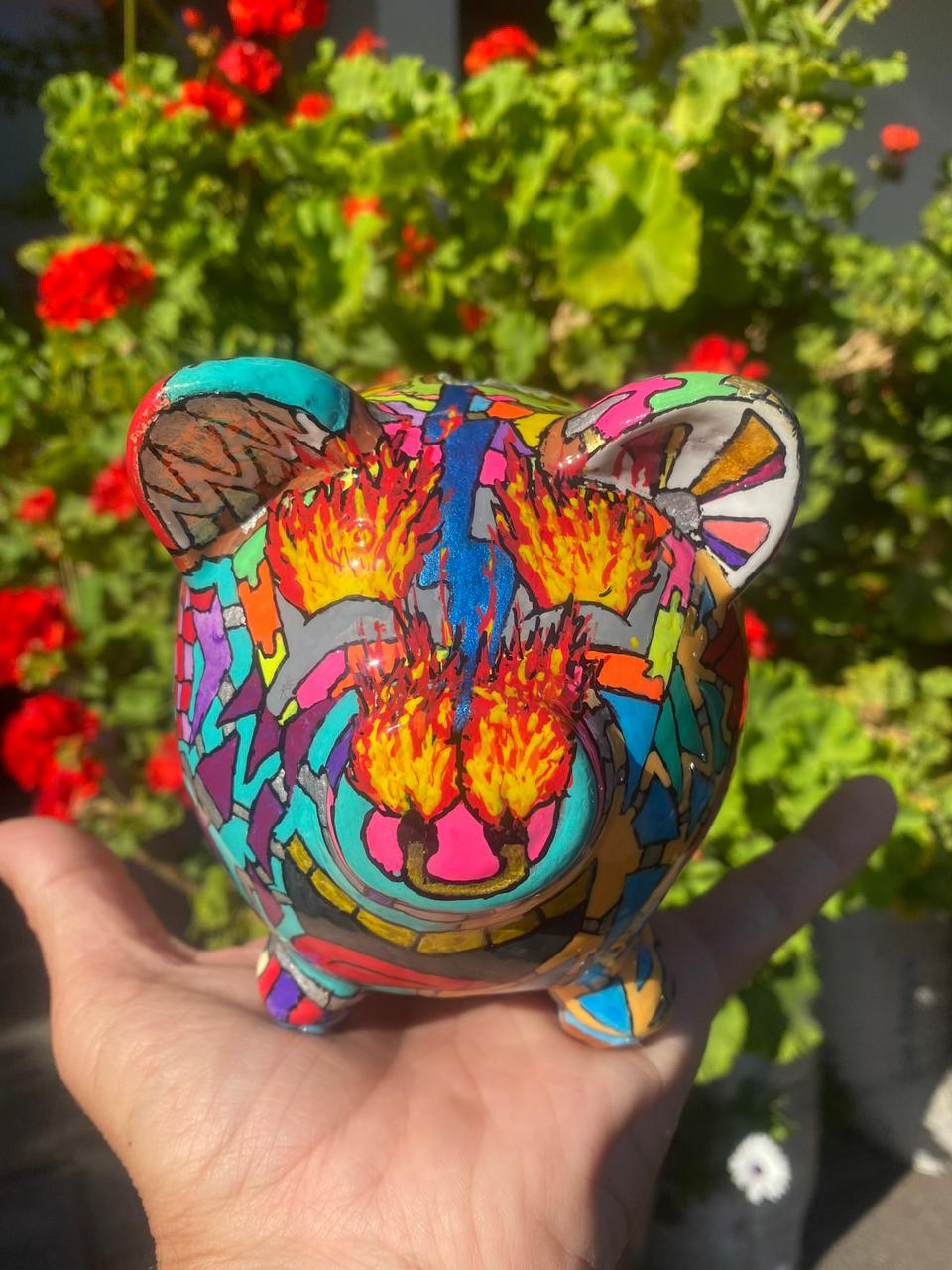A continuación procedo a pintar con colores alegres y fuertes cada parte de la figura. Para terminar y darle un toque especial, baño en resina la escultura, dejándola así con un brillo único, dándole la impresión que se tratan de figuras de porcelana o cerámica. Te invito a dejarme tus comentarios de que tipo de escultura te gustaría ver pintada con mi estilo.
