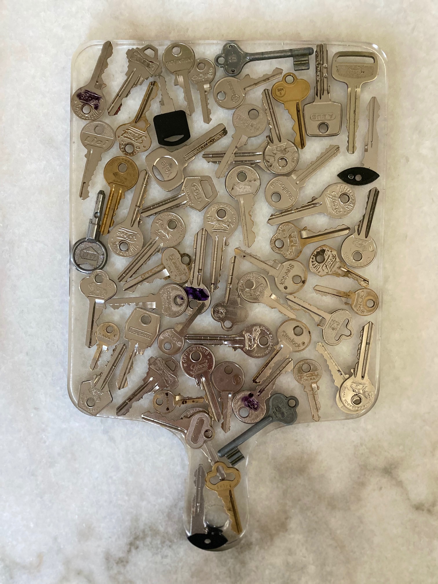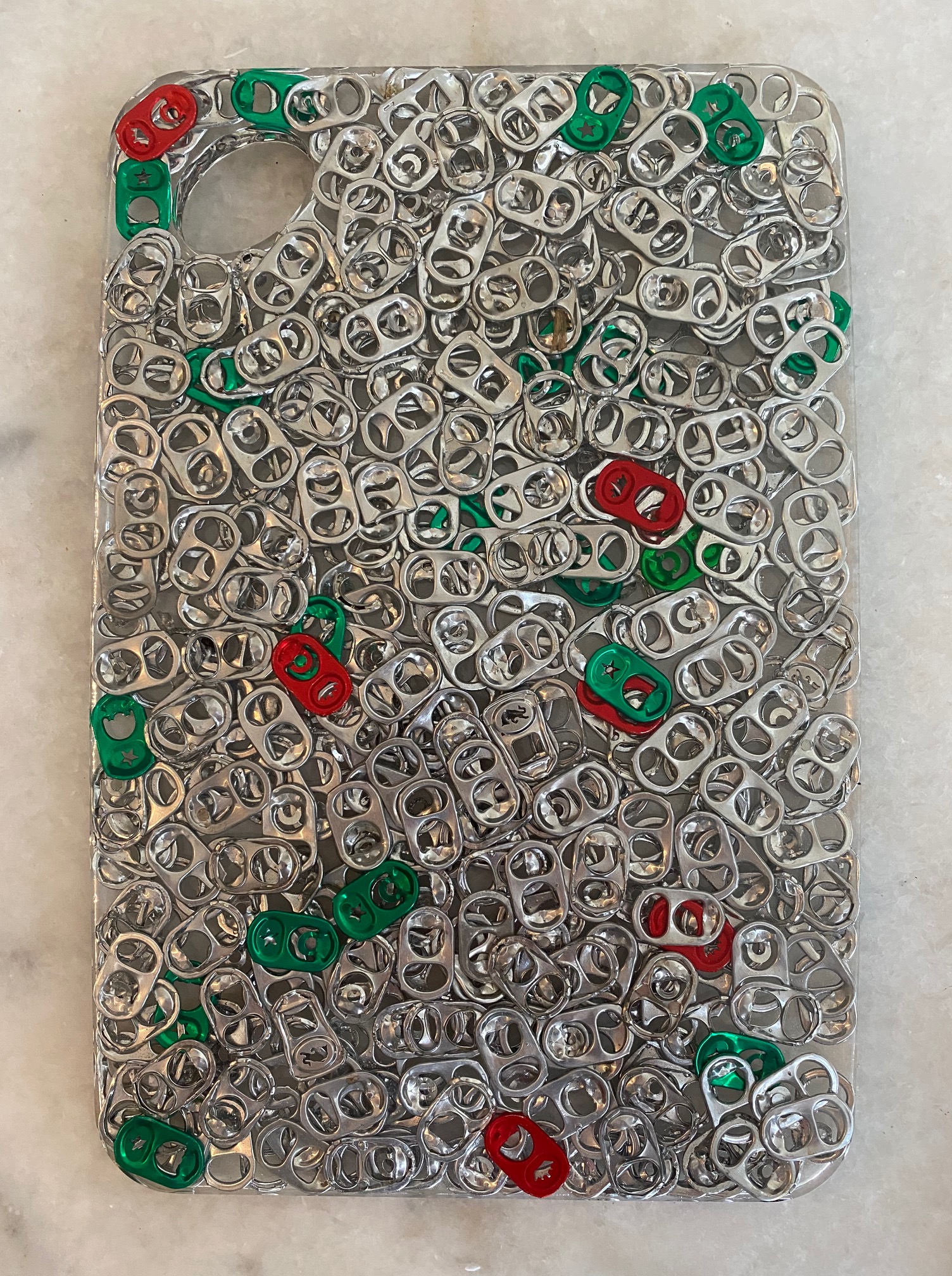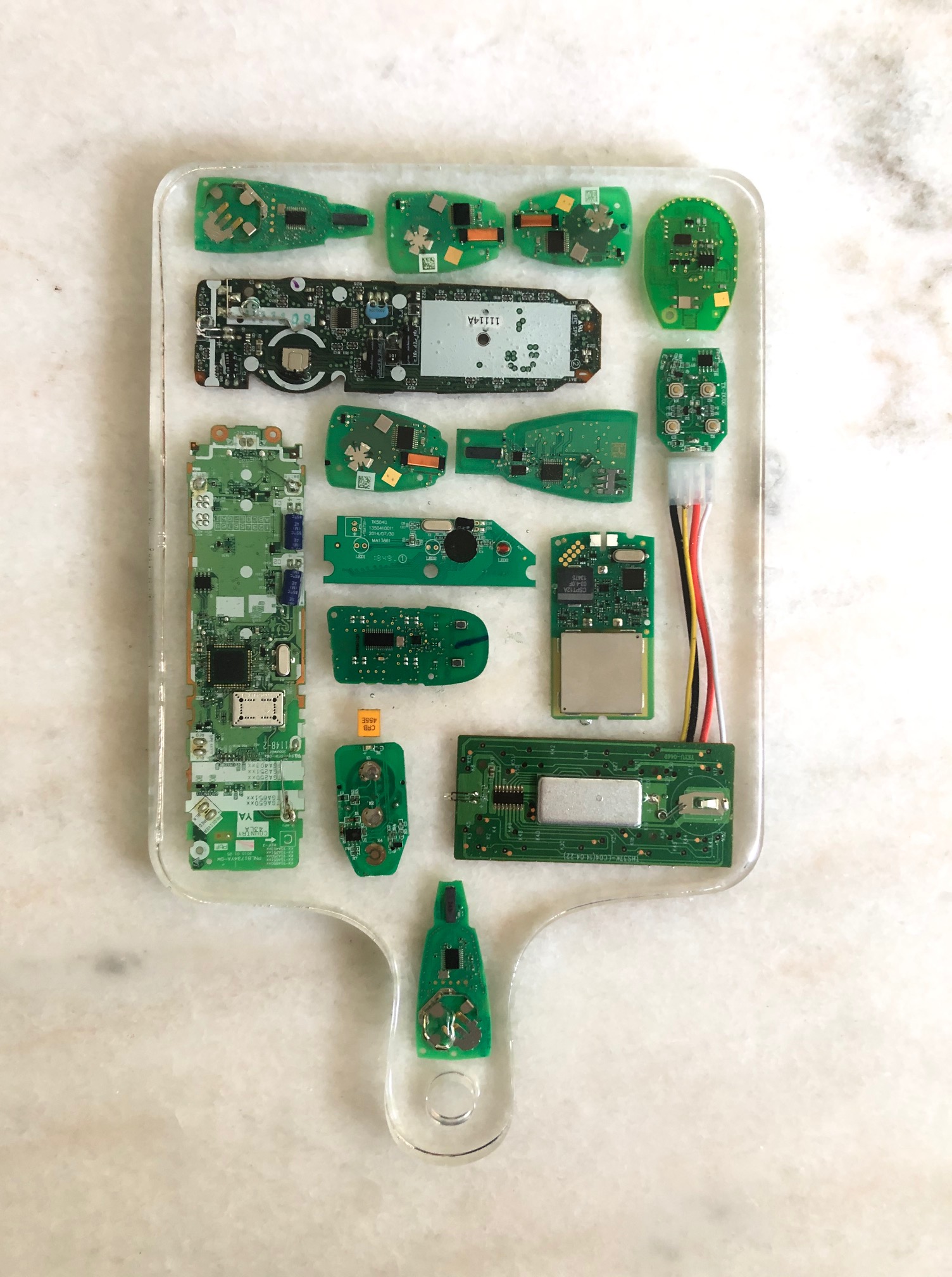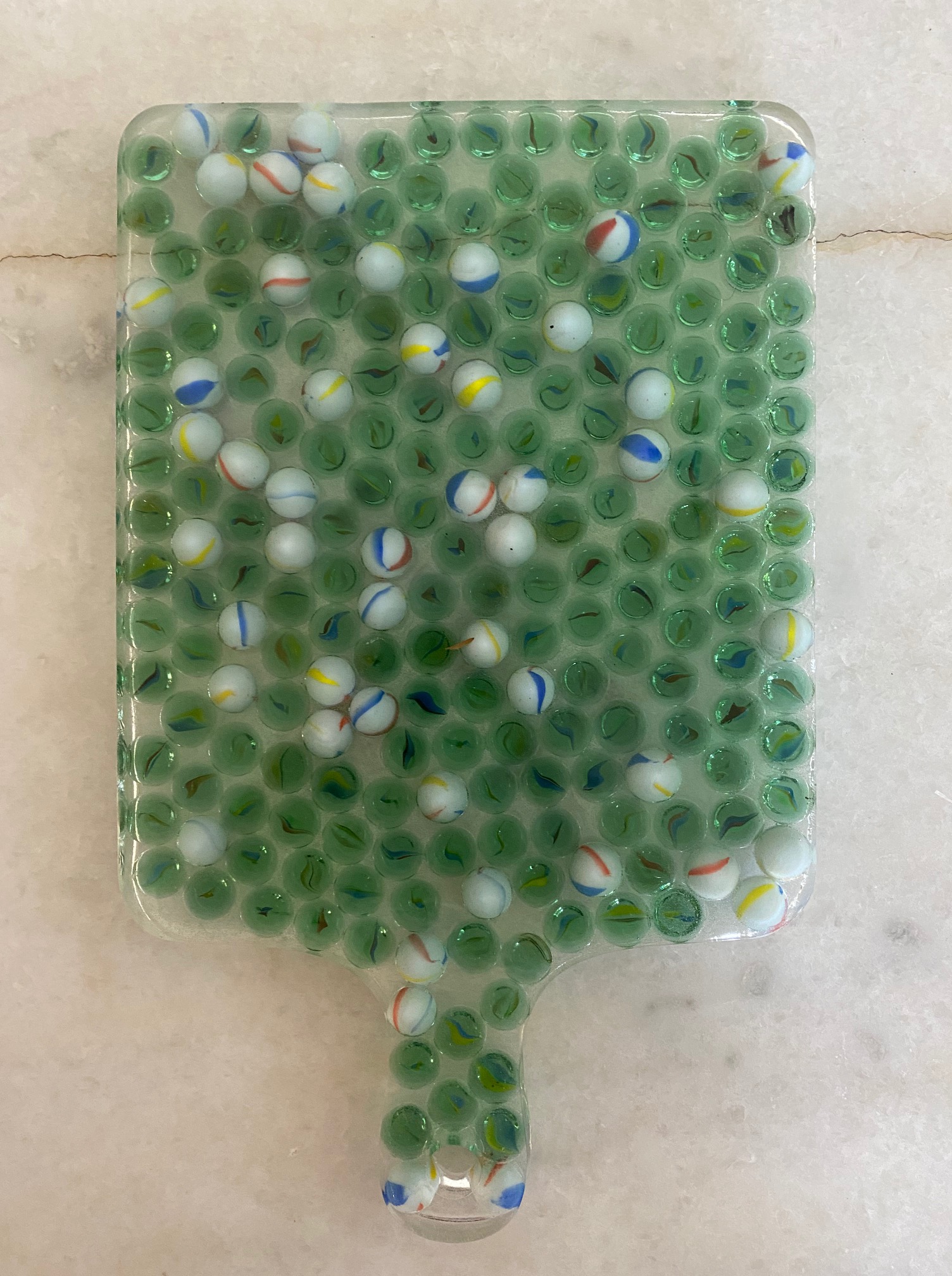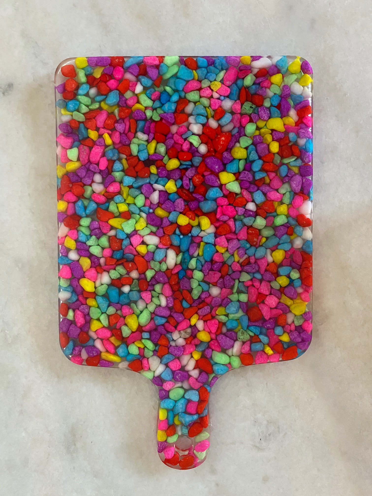Las tablas pueden usarse como cualquier otro tipo de tabla, pero tambien puede usarse como decoración o adorno. Destacan en ellas los materiales usados como rellenos; tapas de botellas, corcho, dulces, llaves, envoltorios , etc. Estas piezas miden aproximadamente 33 cms de largo por 22 cms de ancho.