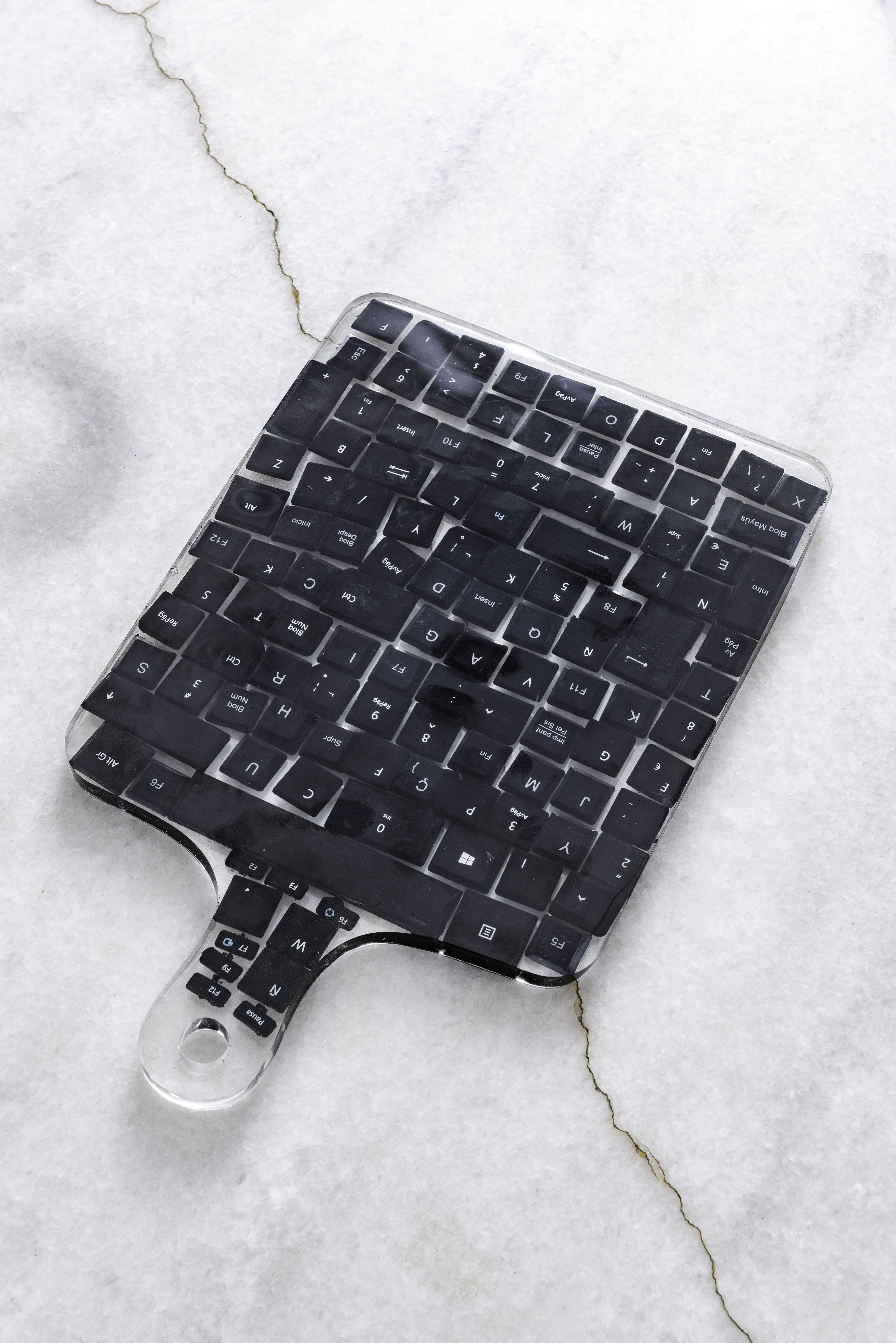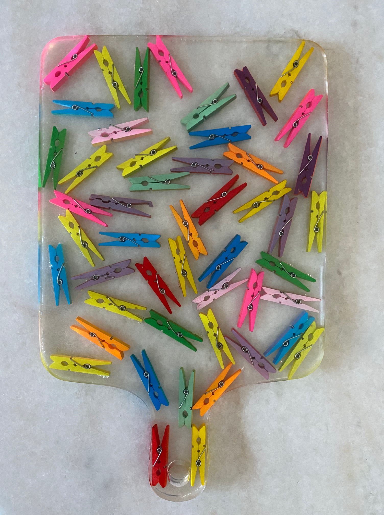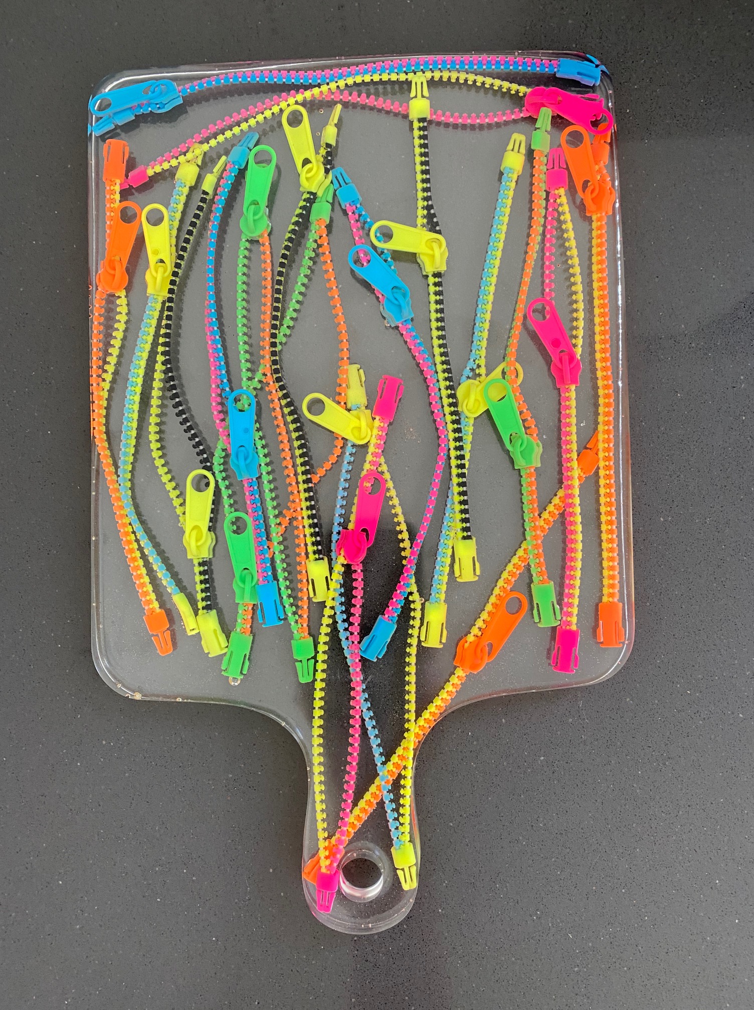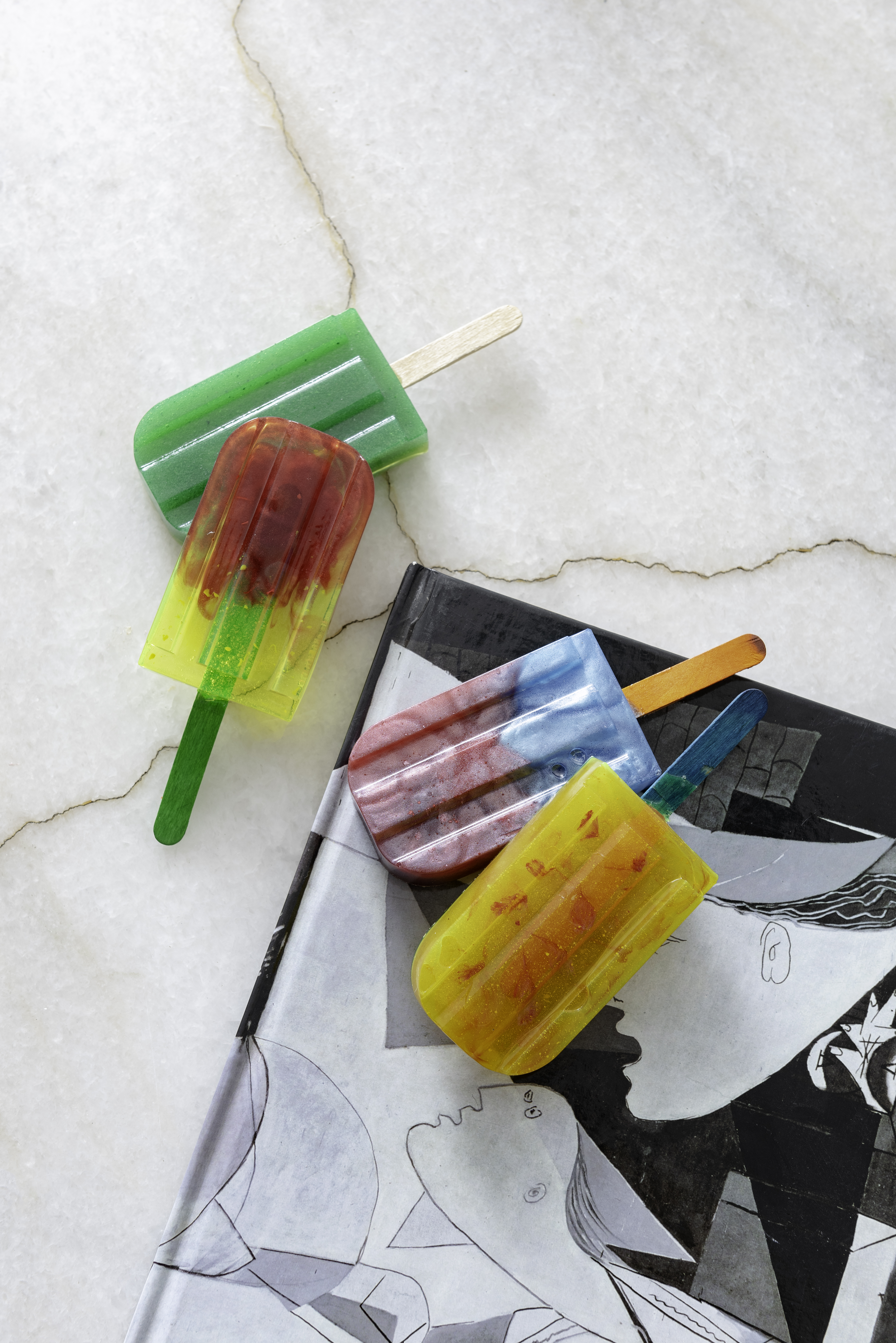 La resina que uso es libre de VOC y BPA por lo que una vez que el proceso de endurecimiento se lleva a cabo, la obra creada pasa a ser inerte, por lo que no hay problema que tenga contacto con alimentos.