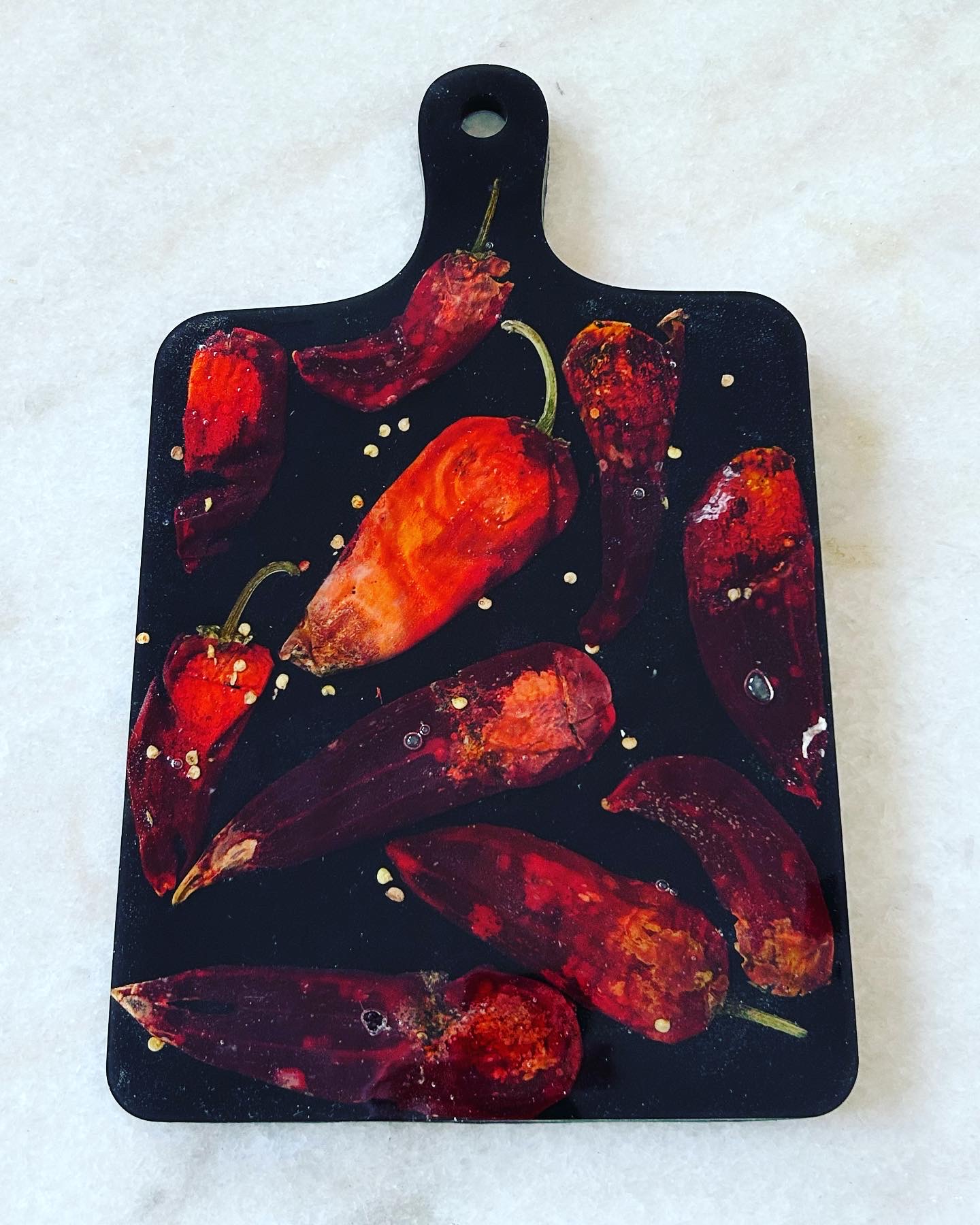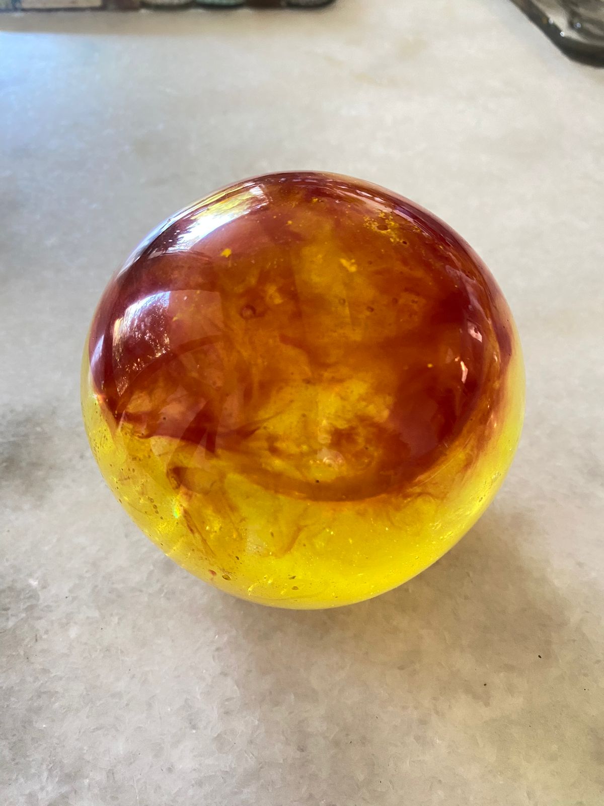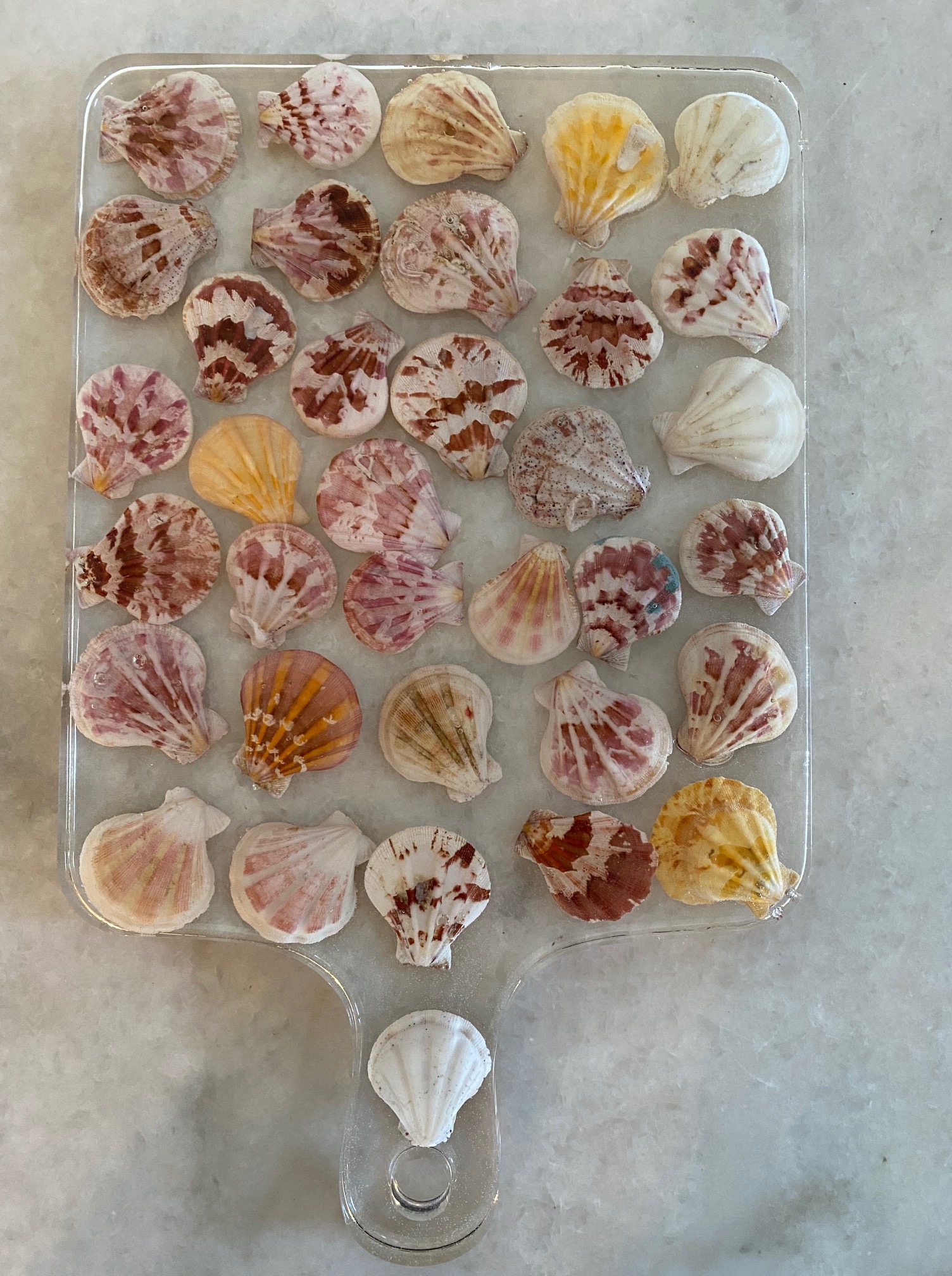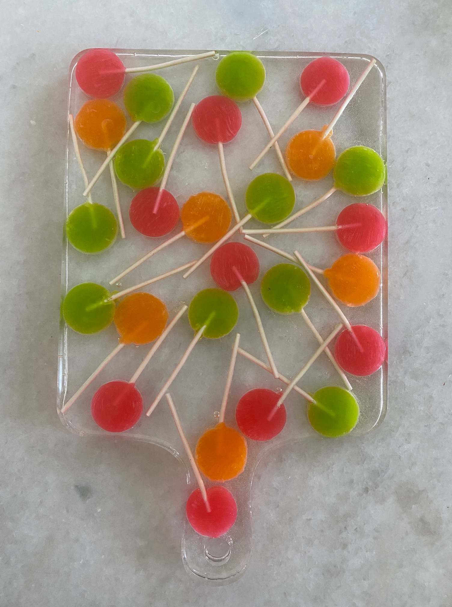 La resina que uso es libre de VOC y BPA por lo que una vez que el proceso de endurecimiento se lleva a cabo, la obra creada pasa a ser inerte, por lo que no hay problema que tenga contacto con alimentos.